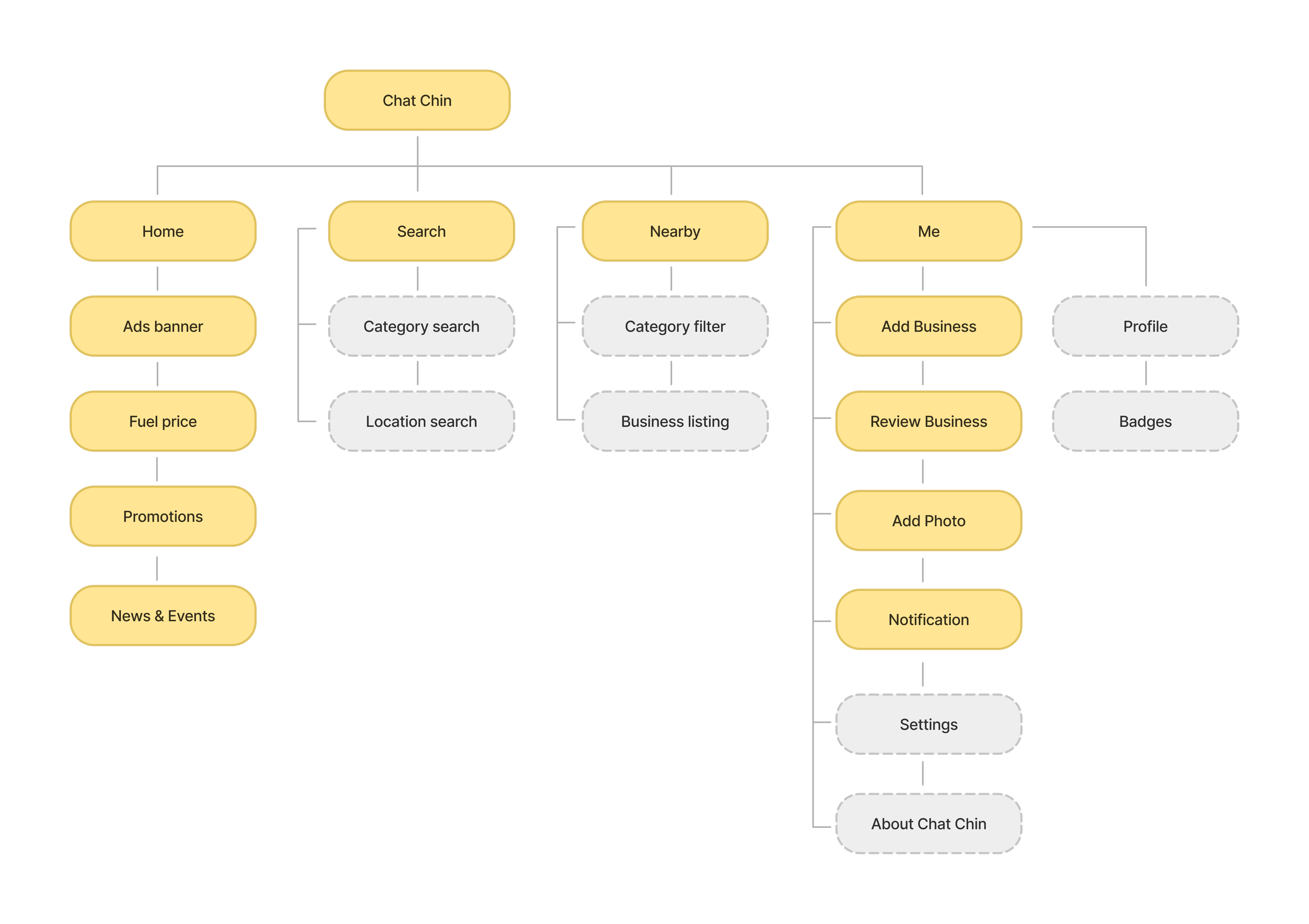 Next step, I proposed the IA to better discuss with my product owner and it helps me to visualize the site map of our product based on the core features.